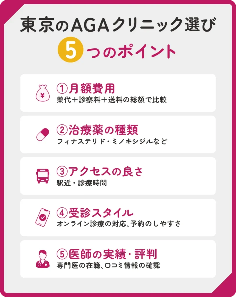 東京でのAGAクリニックの選び方5つのポイント
